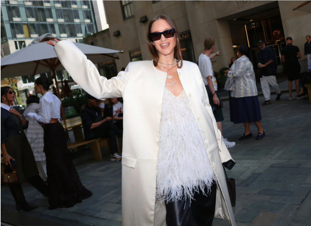 For fall and winter, the most iconic piece on the New York streets is the versatile and highly designed transitional outerwear. Whether it’s a classic leather bomber jacket or a textured suede blazer, both create a unique look in the cold. Deep hues like camel, vermilion, and chocolate brown dominate the look, creating a practical and modern look when paired with pleated trousers or wide-leg denim.